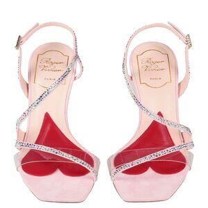 NEW ROGER VIVIER Made In Italy Leather Bling Heel Sandals PINK 5562tn