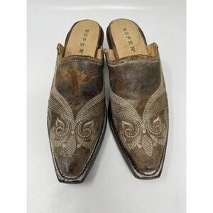 NEW ROPER WOMENS VINTAGE BROWN LEATHER MULE WITH EMBROIDERY SIZE 7 WESTERN