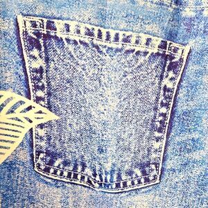 : 3D Screen Print. To create an illusion. NOT REAL DENIM JEANS!