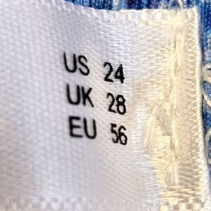 Plus Size 24=3X Waist: 44"-48" & Inseam: 18.5" & Capri Length: 30.5". All measurements are approximate and taken laying flat. The colors are medium blue, red, white, and green.