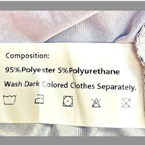 : Material is 95% Polyester & 5% Polyurethane. Wash with Same colors cold. Hang dry. Please read disclaimer above in my closet. Ty.