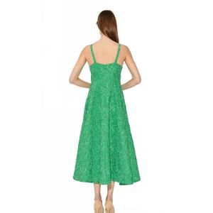 Striking emerald piece ideal for any evening event. Sleeveless, A-line midi dress showcases a captivating floral pattern and practical pockets for added functionality. With a chic V-neckline and minimalist trend, embodies both style and sophistication. Back zip closure. Hand wash. Whether celebrating St. Patrick's Day or another occasion, your go-to choice for an effortlessly elegant look.