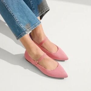 Experience the perfect blend of style and comfort with Rothy's pink Mary Jane flats. Featuring a pointed toe and a minimalist design, these shoes are crafted for casual elegance. The soft matte material and thin strap add a modern touch to your everyday look.