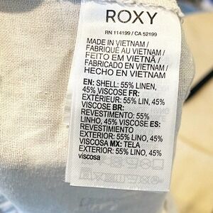 NEW ROXY WOMEN'S SEZ0 OCEANSIDE QUIKSILVER ARJNP03006 FLARED LINEN PANTS-FALL M. Flared Pants. Woven fabric. Smocked waistband. Drawcord. Back pockets. 55% Flax Linen, 45% Viscose / 55% Linen, 45% Viscose.