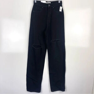 NEW RSQ Black Distressed High Rise Baggy Jeans Straight Leg Women's Size 23