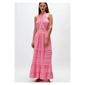 NEW RUE STIIC Sierra Backless Halter Maxi Dress Bright Pink XS