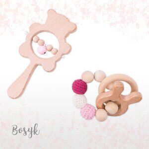 NEW - Rabbit Set PinkTeether Wooden Rattles