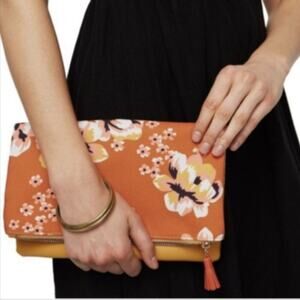 NEW Rachel Pally Reversible Foldover Clutch Zahara Goldenrod Orange Floral