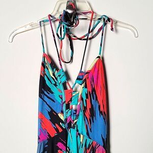 NEW Rachel Pally XS Harrison Lace Up Bust Boho Sexy Halter Maxi Long Gown Dress