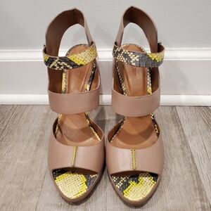 NEW Rachel Roy Devyn Snake-Print Strappy Sandal Taupe/Lime