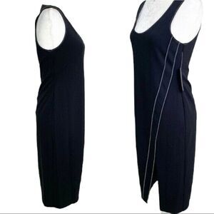 Rachel Roy black midi sheath dress sleeveless Contrast Stitching in white — Front Slit