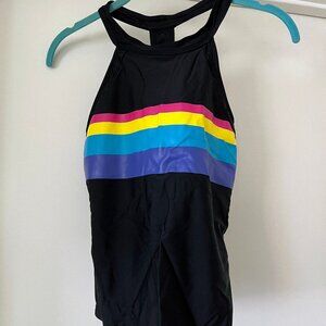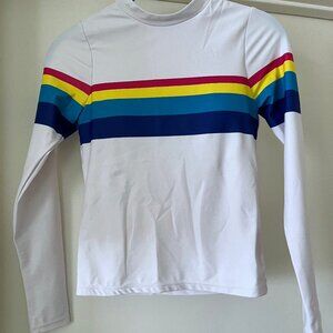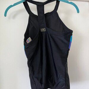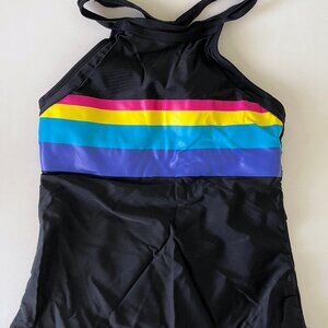NEW Rad Swim XS Rash Guard, Tankini Top, Baseball Cap + Bag Retro Rainbow Stripe