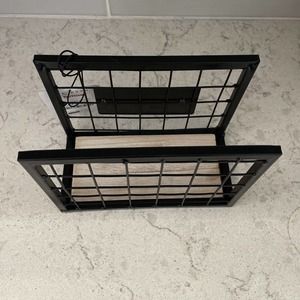 NEW Rae Dunn Black Metal GATHER Napkin Holder Wood Bottom