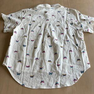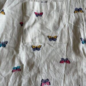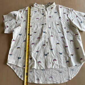 NEW Rae Dunn Linen Blend Butterfly Short Sleeve Collared Button Down Shirt, XL. Brand new with tags.