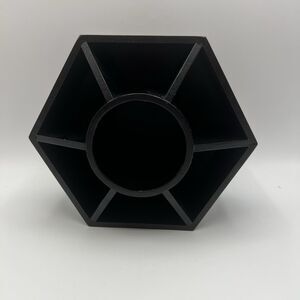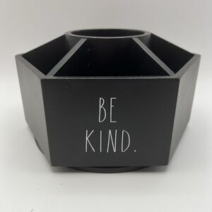 The NEW Rae Dunn Pencil Cup is a stylish and functional desk accessory made of black wood. Featuring a lazy Susan bottom, this pencil holder allows for easy access to your pens or pencils while keeping your workspace organized and clutter-free. Imported from China, this office supply is designed by Rae Dunn, known for her minimalist and chic designs. Perfect for business professionals looking to add a touch of sophistication to their office.