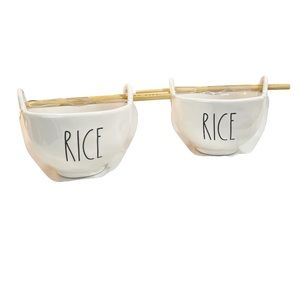 NEW Rae Dunn RICE Bowl with Chopsticks Set/2 ๐ฅข