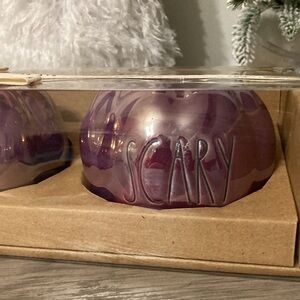 NEW Rae Dunn SPOOKY SCARY STRANGE PURPLE LUSTRE PUMPKIN TEALIGHTS