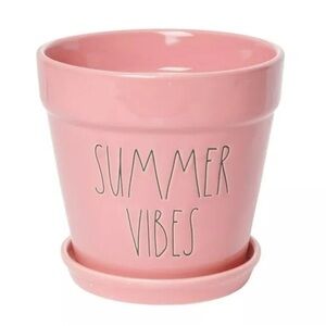 NEW Rae Dunn ‘SUMMER VIBES’ Ceramic Garden Planter Flower Pot in Pink color and Tray
