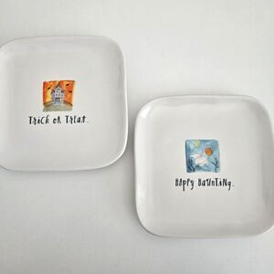 NEW Rae Dunn | Set Of Two Halloween Trick Or Treat Happy Haunting Square Plates