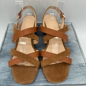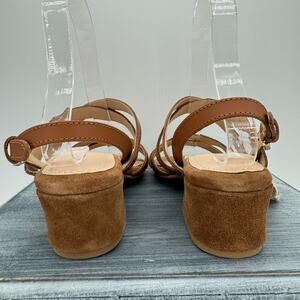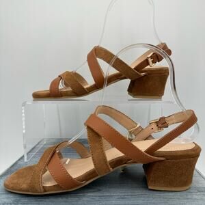 NEW Rag & Co Astrid Mid Heeled Block Leather Sandals Tan Size 7