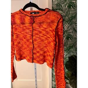 NEW Ragged Priest Orange Open Stitch Cropped Knit Top Sz S