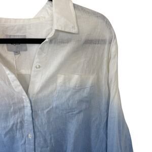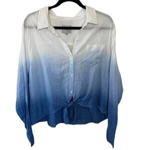 NEW Rails Linen Blend Tie Front Top Blue, White Button Front Long Sleeve XXL