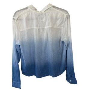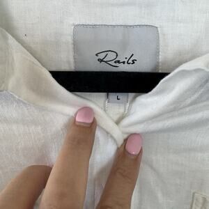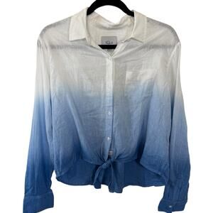 NEW Rails Linen Blend Tie Front Top Long Sleeves White, Blue Button Front Large