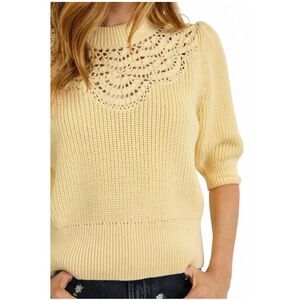 Rails Steph Sweater Top Womens Size Large Yellow Crochet Short Puff Sleeves NEW