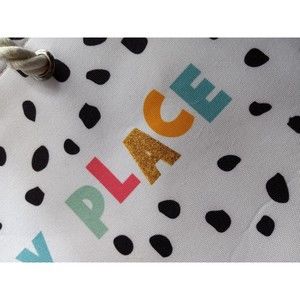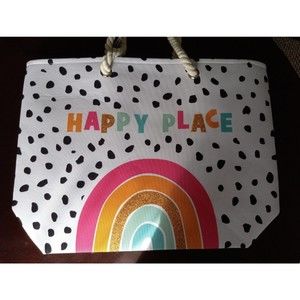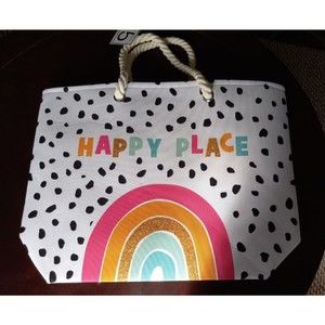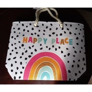 NEW Rainbow Happy Place Polka Dot Boho Beach Tote Travel Shopping Bag Glitter