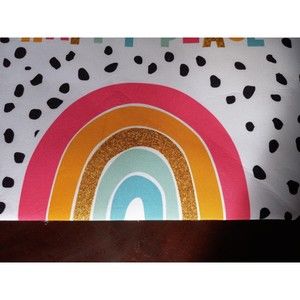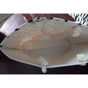 Third row of rainbow and A and P are in gold colored glitter. New with Tag. Color : Multi Size : 21" X 15.75" Material : Polyester Blend Rainbow Polka Dot Print Beach Tote Bag I bought one for my daughter but accidently put 3 in the quantity, so I got 2 extras. Super cute, so decided to sell the extras. They are stored in a tote, new but may have a few dents/marks from being in tote. Please see photos. Great for beach, camping, or school. I will have to fold to ship the out.