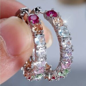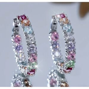 💗 NEW Rainbow crystal embellished hoop earrings 💗