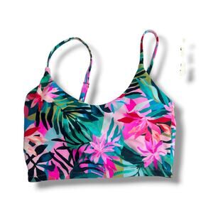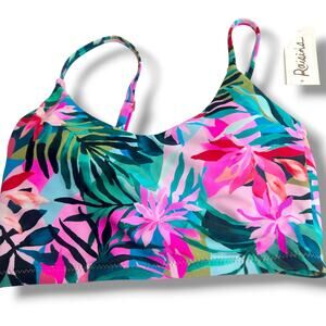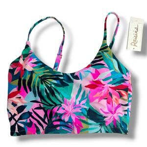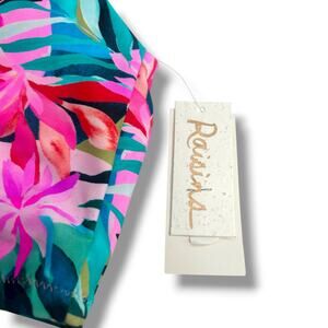NEW Raisins Bikini Top Size XS Pink Teal Tropical Print Pullover Swim suit Tank