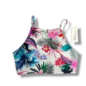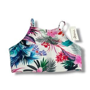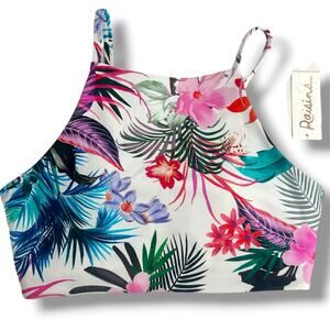 NEW Raisins White High Neck Bikini Top Size Small Tropical Floral Strappy Swim