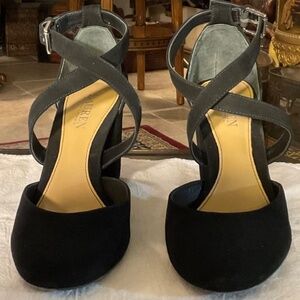 NEW Ralph Lauren - Fana Black Criss Cross Strap Suede Block Heels Size 8.5 B