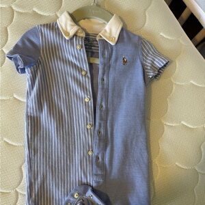 NEW Ralph Lauren Knit Cotton Oxford Fun Shortall - 6 months