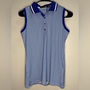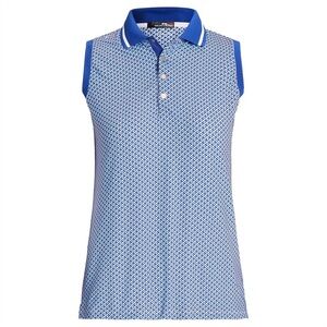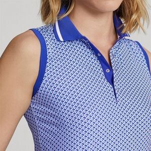 Keywords: Ralph Lauren RLX polo, women’s sleeveless golf top, moisture-wicking golf shirt, blue geo print polo, lightweight golf apparel, designer golf clothing, breathable women’s polo, sporty chic golf fashion, slim-fit sleeveless polo, women’s XS Ralph Lauren