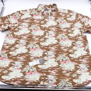 US Size XXL 2XL Men's Ralph Lauren Short Sleeve Tropical Surf Palms Scene Button-Down Shirt Brown 710692787001 - New with tags.