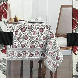 NEW Ralph Lauren Winter Christmas Poinsettia 100% Cotton Tablecloth Cover 60x84