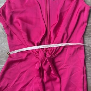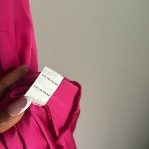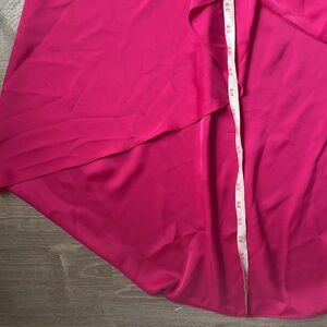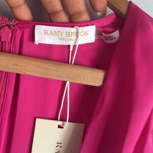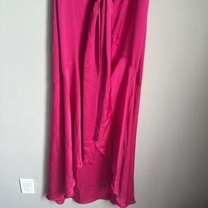 The Ashlyne Plunging Maxi Dress by Ramy Brook is a vibrant fuchsia satin gown designed to make a statement.
