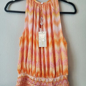 NEW Ramy Brook Audrey Smocked Printed Orange Midi Dress Size Small