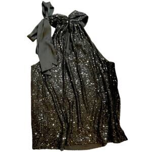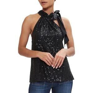NEW Ramy Brook Women's Small Paula Sequined Tie Neck Halter Top Blouse Black