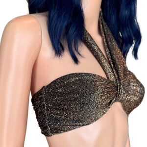 NEW Ramy Brook Brown Sparkle Lura Bikini Top Size Small
