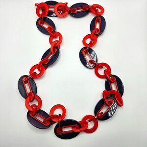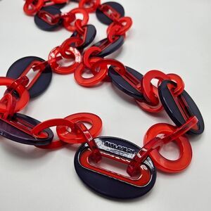 NEW Rara Avis by Iris Apfel Navy & Red Acrylic Chain Statement Link Necklace