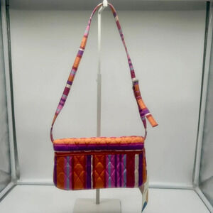 NEW Rare Vera Bradley Caroline Shoulder Bag Clutch Wallet Silk Hibiscus Stripe