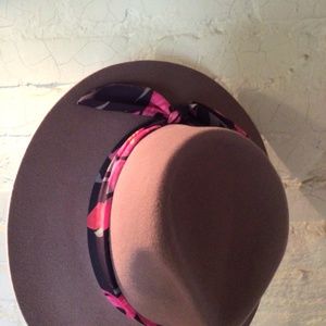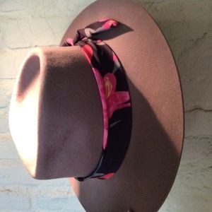 New tag, rare tan wool Panama with floral band 57 cm adjustable