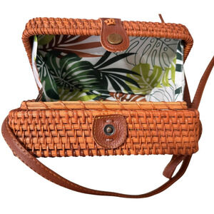 NEW Rattan Woven Crossbody Shoulder Bag Rectangle Snap Close Expressions NYC