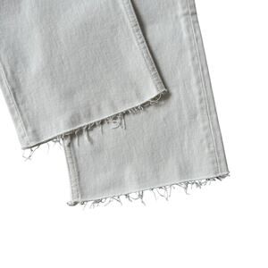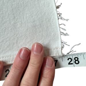 Slightly cropped ankle length with raw, unfinished, intentionally frayed hems