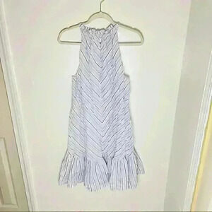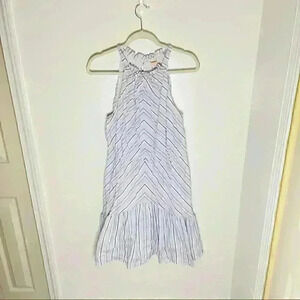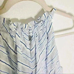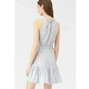 NEW Rebecca Taylor Blue White Stripe Halter Neck Mini Dress Linen Blend Beach