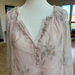 This is a lovely light silk top from my own closet in a smoke and pet free home. It is a size 10 and new with tags, never worn.