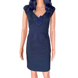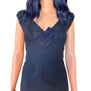 NEW Rebecca Taylor Navy Cap Sleeve Wool Cotton Blend Dress